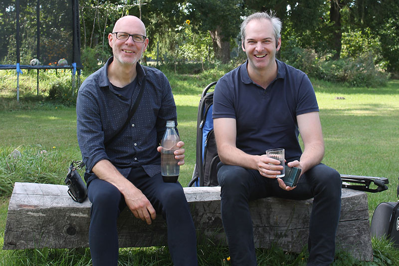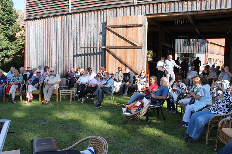 Schauspielerin Monika Bujinski und Andrea Knefelkamp-West am Konzertakkordeon. In der Scheune der drei